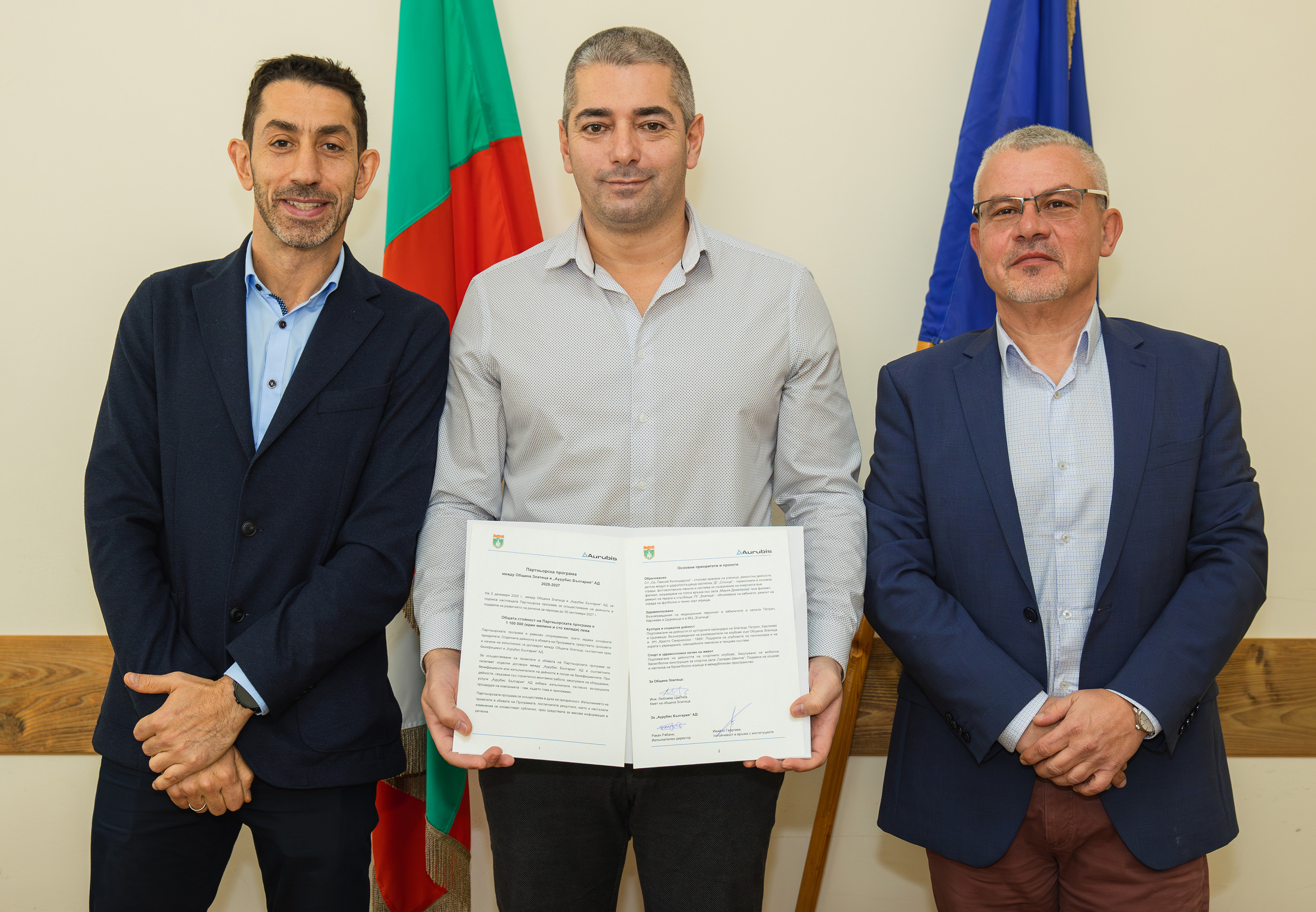 Споразумението бе подписано на 2 декември 2025 г. в Златица от инж. Любомир Цветков - кмет на общината, Ракани Рабани - изпълнителен директор на „Аурубис България“ и Ивайло Георгиев - ръководител Устойчивост и връзки с институциите на компанията.